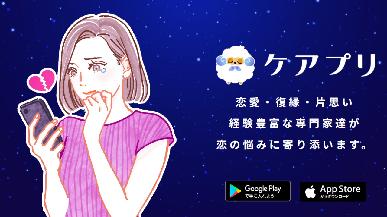 『ケアプリ』は、恋愛・復縁・片思いなどの悩みに特化した、チャット形式の占い相談アプリです。